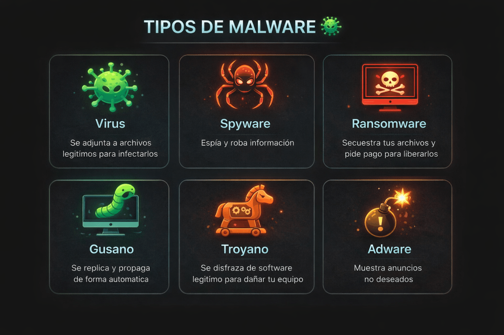 Aquí te dejo un breve ejemplo de algunos tipos de malware.